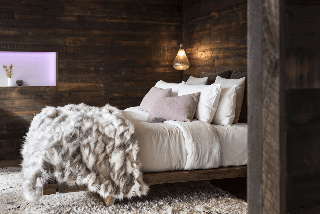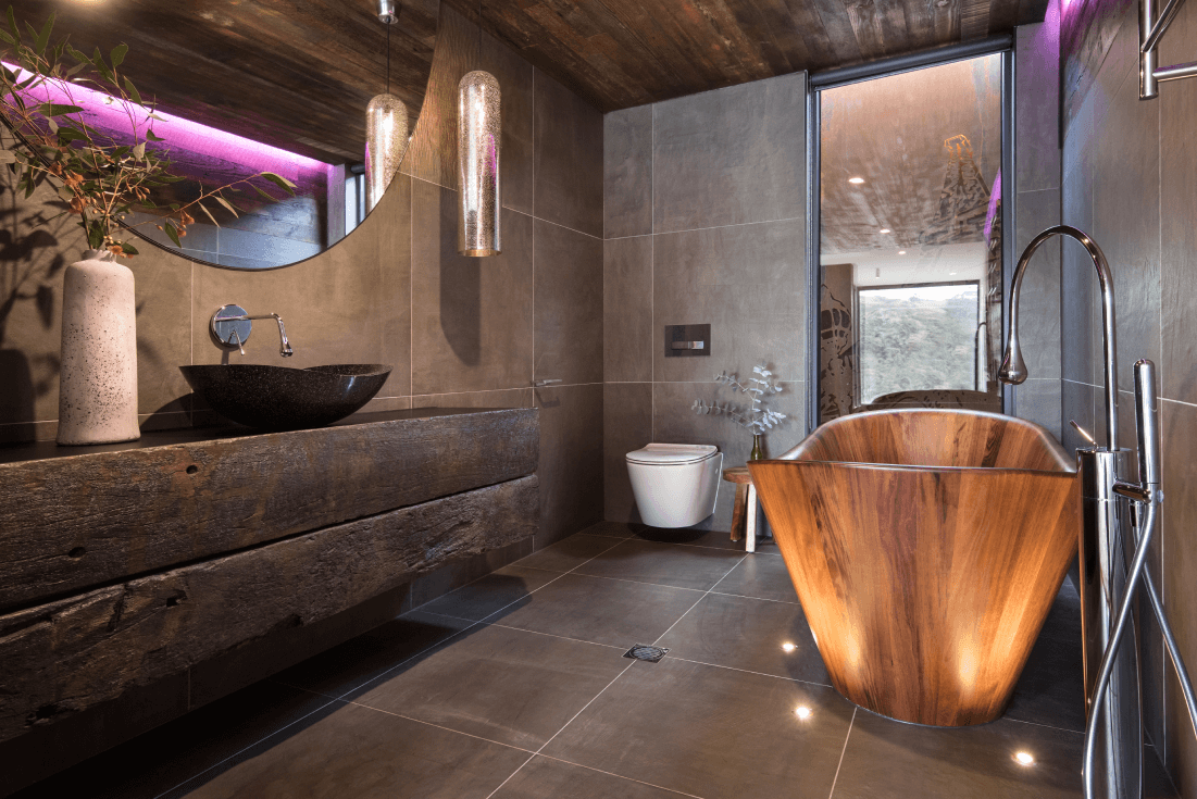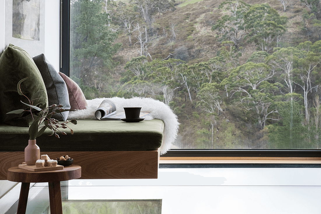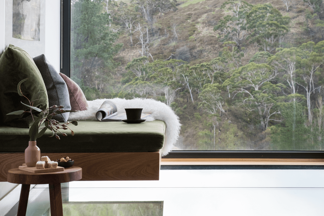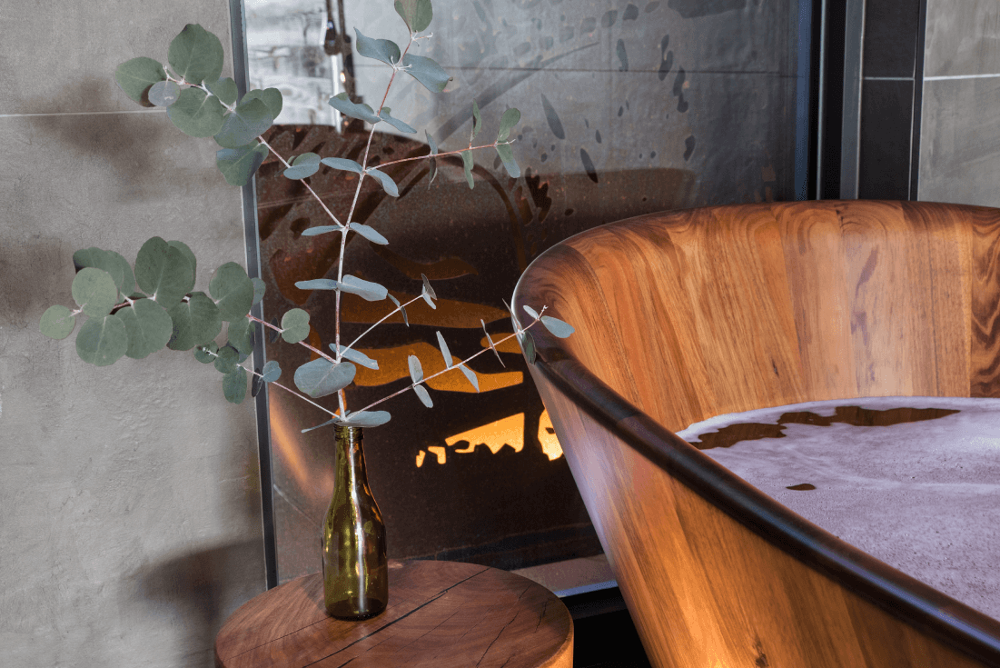 We’ve left nothing out, from the picturesque setting to the huge HD television, Bison rugs, velvet sofas, iPads with Spotify, award-winning Oblica fireplace, Tasmanian blackwood baths and hand-crafted floating bed! Every tile, every plank of reclaimed wood, every rustic feature wall…everything has been handpicked to indulge the senses.